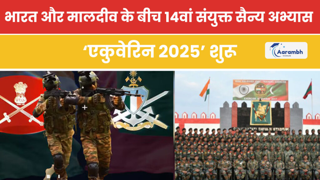 - ‘एकुवेरिन’ भारत और मालदीव द्वारा बारी-बारी से आयोजित किया जाने वाला प्रमुख द्विपक्षीय सैन्य अभ्यास है।