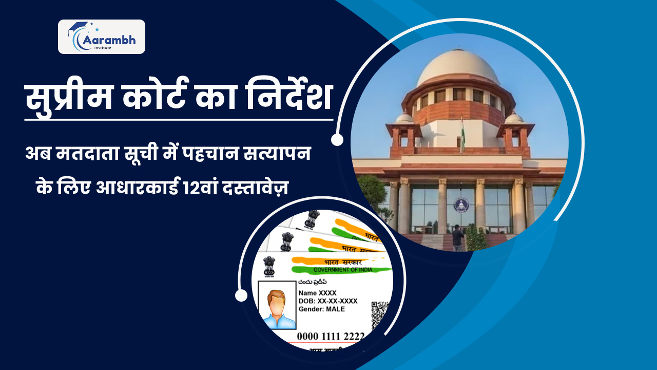 सुप्रीम कोर्ट का निर्देश, अब मतदाता सूची में पहचान सत्यापन के लिए आधारकार्ड 12वां दस्तावेज़